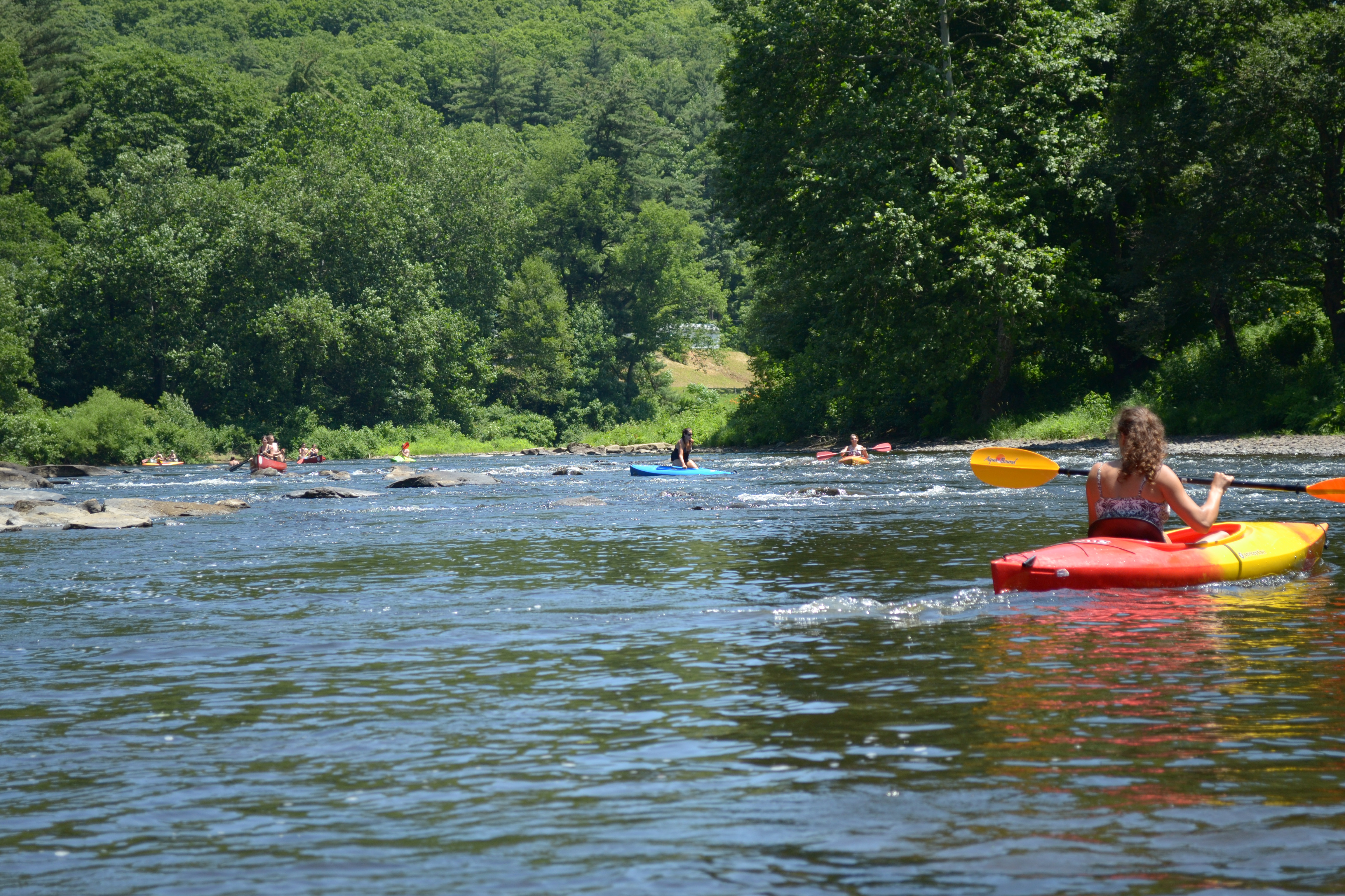 Kevin and I took a quick trip this weekend up to Kevin’s family’s camp on the edge of the Allegheny National forest.  We went up there to float the local big river and maybe do a little blue lining.  Saturday was a brilliant day for a lazy float down a river.  We had a large floatilla heading down river as we were joined by Kevin’s fiance, cousins, brother and a big crew of brother’s friends from New York.  It was a mixed group of experienced paddlers and some who have never been in the presence of a canoe or kayak before, but everyone had a good time and the renters even got their boats back on time.