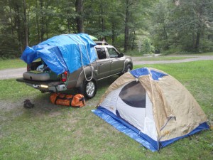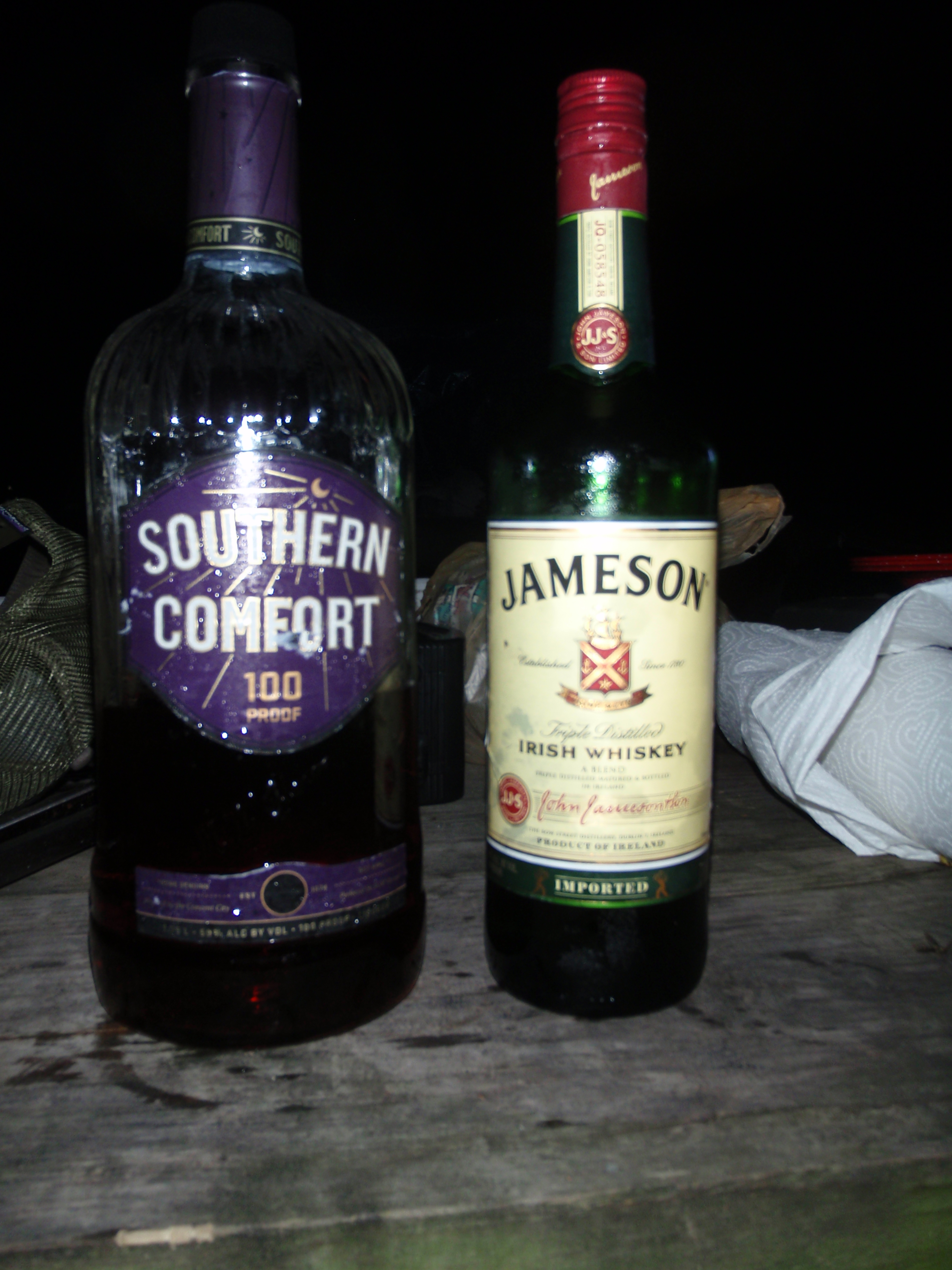 The Irishman got in on Friday night to secure our lodging while myself and my five finger shoe river hippie of a brother got in Saturday night. From Washington, Pa to the Deep Creek area it takes you just a hackle hair over a buck thirty to get there going the limit. We left at 5:00 and arrived on the banks of the Savage around 7:00. Took us a little longer because we had to get wood and Norman was home so we could not acquire it from that location and ended up paying for it. Buying wood is a bunch of bullshit, but whatever. After getting camp set up, which consisted of two tents and a make shift homeless hut in the back of the Rig, we began boozing at a good solid rate. By dark fall, many good conversations were started and finished to only fall blank in memory the next day….due mainly to Jameson and Southern Comfort. The night carried over into morning, and around 2:30 we decided to call it one for the books, especially if we were going to be worth a shit on the water.
