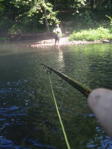 I hear about seven car doors slam and realized that I was about to have some company…I didn’t want company. Sometimes a Bug Chucker just wants it between him, the river and the fish. I wandered down the road to 7x flat. There was some water flogging going on and decided to head further down stream and work my way back up to Garret bridge. I haven’t fished that beat much, but it certainly paid off. First hole and I nailed a brownie on a caddis, followed by a brook on a caddis.