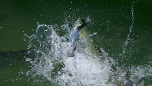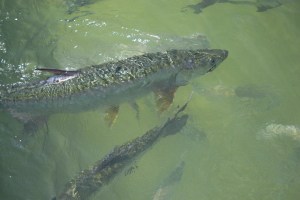 Chris and I teamed up with Captain Sean on his action craft and headed out to the gulf side mangrove banks to look for some tarpon rolling in the post dawn light and out going tide. The engine shuts off and Sean climbs up on the poling platform, the hunt begins. I grab the Thomas and Thomas and perch up on the bow. Chris isn’t a fly fisherman and stands ready with the spinning rod and an old Bagley Fingermullet at the ready. Sean spots a few rollers about a 100 yards a way and starts poling over. Suddenly, a tarpon rolls about 80 feet off of our 10 o’clock and Chris tries to fire the plug, but the bail closes right after the release and the old Bagley lands in the mangroves.