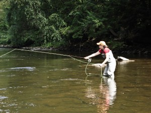 The next day, after we broke camp we headed to the Yough for a quick fly dunk as the weather was getting ready to turn. Cass made a few casts with a bugger through a deep cut to no avail. I managed a smallie and two suckers, so not complete skunkage. The important thing was that the near success is a stronger drug in this sport than an over abundance. Seeing those fish come up from the bottom of the river to strike at the fly is as big of an adrenaline rush as their is, Cass got to have this. She’ll have that rush and then have it accompanied with the climax and reflief that occurs after the take, the fight and fish in hand, soon enough.