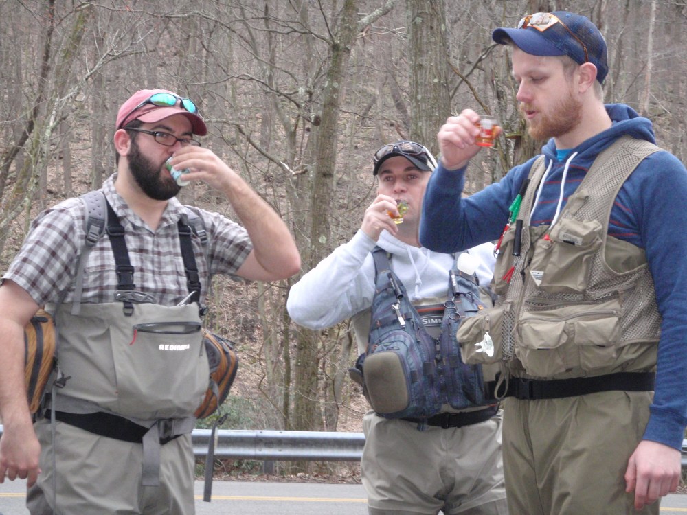 Adam, Ryan, Steve-O and myself made our way down to the home waters to search for our beloved trout and the Honey Badger. Thankfully, we found them residing in the normal places at least the trout that is. This trip was for our good friend Gene. We lost Gene about a week ago and without any of us saying or discussing to do a fly fishing trip, it just worked out and fell into place that the clan was able to go fish. We started off the day by Steve-O picking KG up at 6:15 and meeting Ryan and Adam at Krispy Kreme drive thru at 6:30, great meeting place. Adam needed a round of some type of coffee to wake his ass up. Once the wake-up juice was bought from the dread-lock white chick we made our way down to Garrett County.
