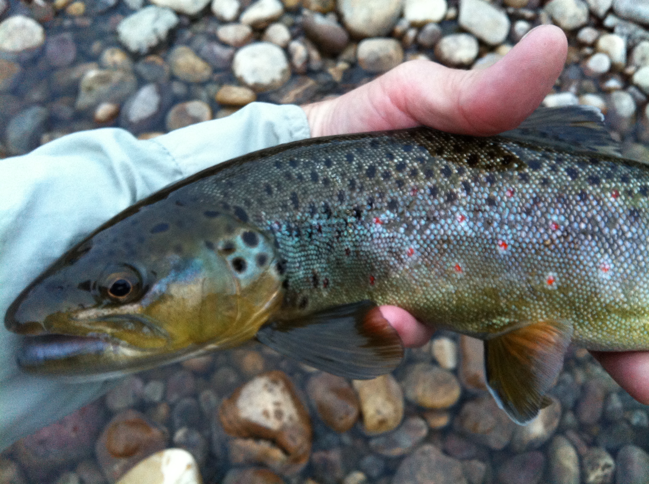 The largest fish I landed were the two I landed in a swift riff, they were holding behind a boulder and proved too weak to resist a black larry. The first was roughly 16-17″ and the very next cast I caught a 17-18″. He is the big headed fish, a few pics up. I had three others on that were over 20″, but poor hook sets and hard fighting brownies, proved to be too much and I lost the battle on all three.