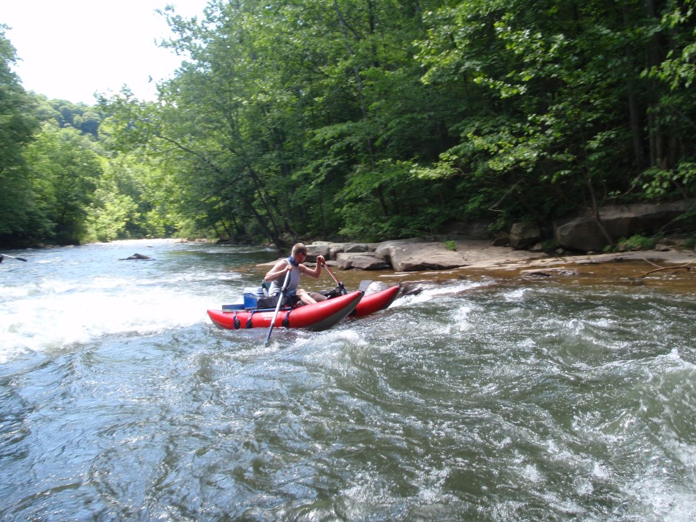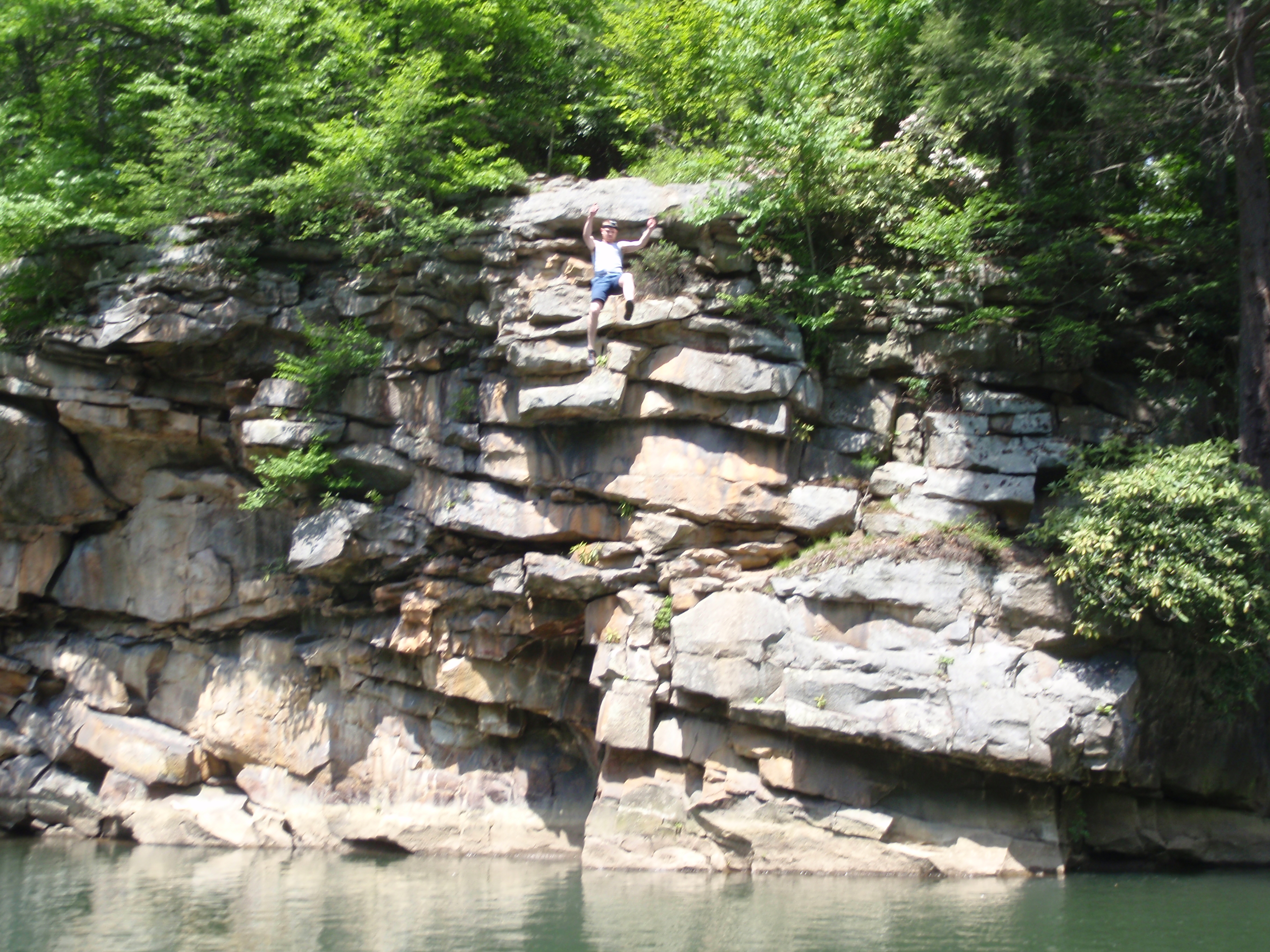 We got off to a late start the morning we floated due to booze related activities the night before. The game plan was to drop Steve-o’s rig off at the take out and him and Adam would jump into the back of my rig and we would roll into Barnum. We got to Barnum to launch the rafts at Blue Hole and the whole time we were getting ready I was contemplating if I was going to jump off the high wall with Adam. We got the rafts in the water and as I rowed out and started looking at it more and more the sissy in me came out as I told Adam I was not going to do it. I felt bad that I let him down on not jumping but he was a champ and he went through with it. Hats off to you Adam and this picture is for you. That’s live action folks!