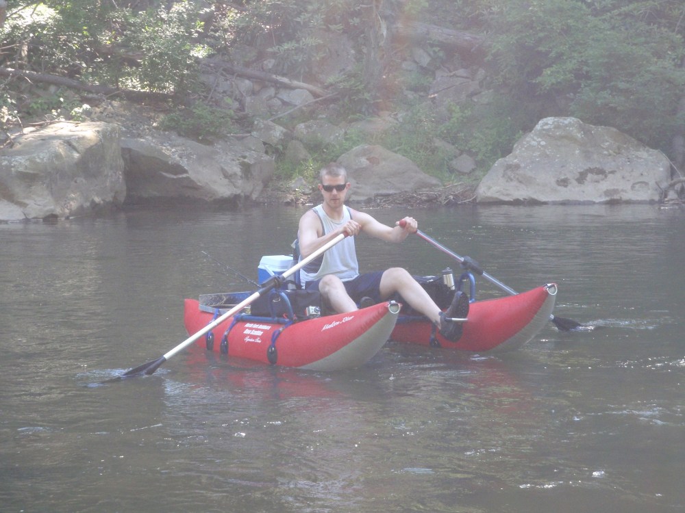 After the white water experience I still had Ryan in the boat to fish a nice 200 yard pocket water beat. Ryan landed one fish out of this run but had several misses. Once again it was another rainbow. We were still in search of Hog Johnson and coming up on cutthroat alley I had big expectations. We beached the boats to take a nice shore lunch. Lunch consisted of Peanut Butter and Jelly along with chips and for dessert was the cheapest chocolate chip cookies the market could offer. While the guys ate I had to get some fishing time in so I started fishing for a riser and after making several casts I connected only to have the fish jump 2 feet out of the water and throw my hook back into last week.
