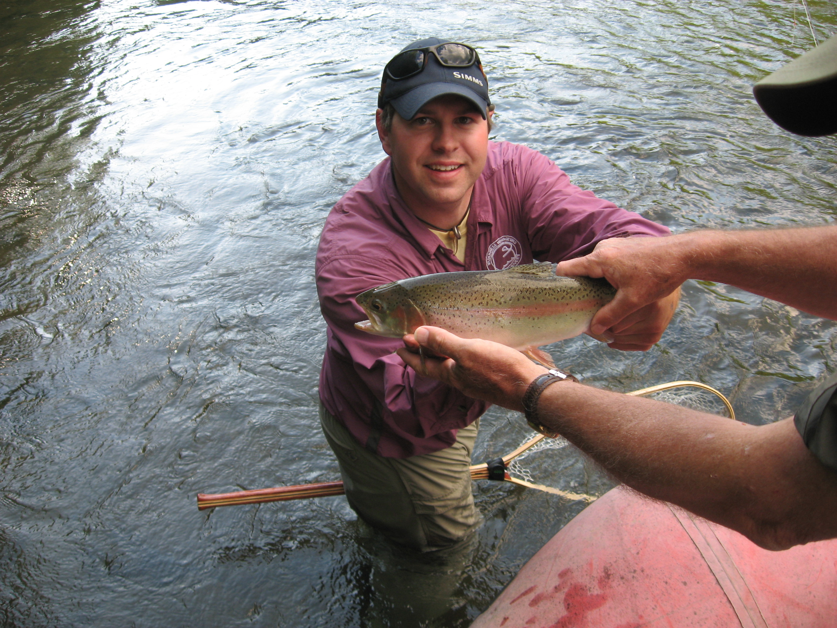 As we tried to make up time the guys kept getting into fish on the secret rig I had set up for them. I am personally not about numbers and I am not going to brag about how many fish were brought to the boat but Paul and Bob seemed to be very happy with the day. The guys even were able to get a double as we floated through a nice run. The weather was perfect for us and water conditions were in the low 50’s as usual. The flow was around 800 cfs. Good times and another great day on the water living the dream.