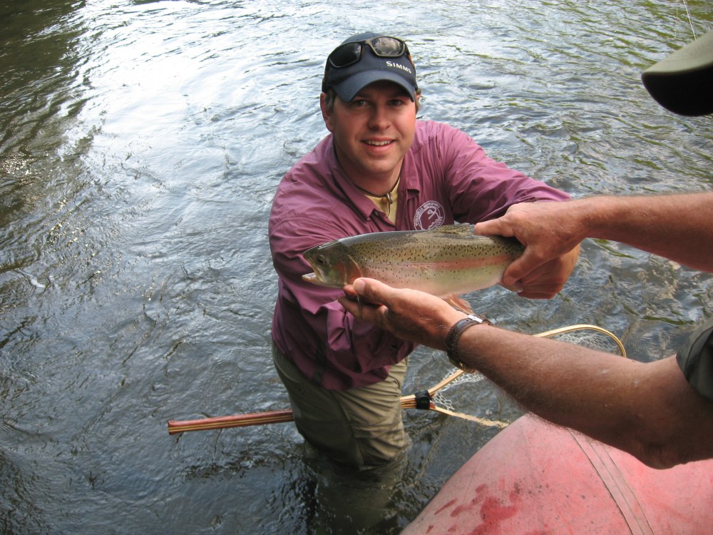 I beached the raft and prepared lunch for the gents while they took in the nice day. The guys got their fill from the great lunch that the Pub prepared for us and we were back onto the water. The next location we got into fish is an area that many people would not think hold fish but if the conditions are right it can be very successful. The key to that area is being very stealth with your cast and the boat. If you can make 40 to 50 foot casts and hold a perfect drift you could clean house. The fish in that area know the drill and one little thing that they do not like can put them down until you are 100 yards down stream.
