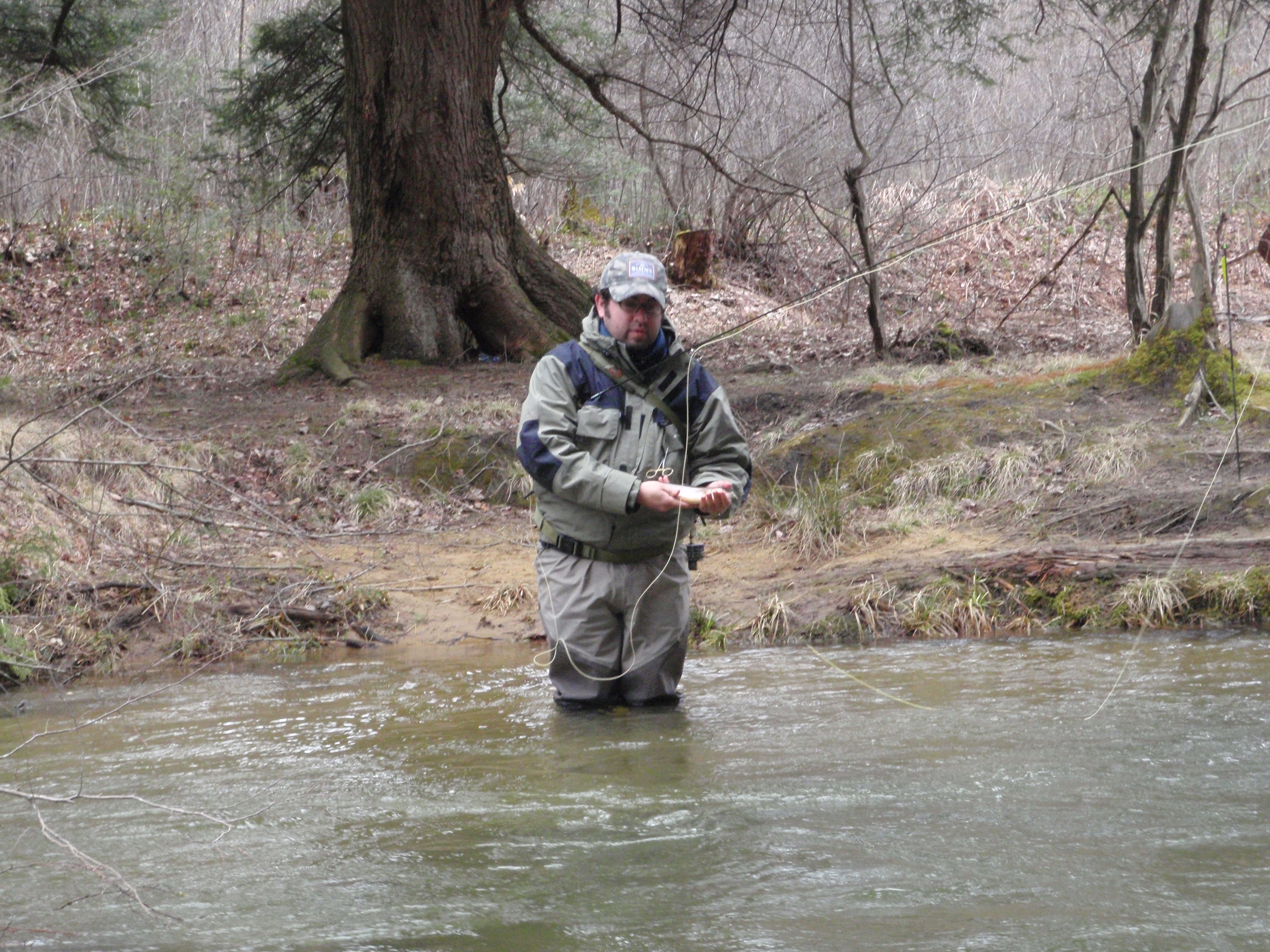 The fly above is the “mini brown trout assassin”. That fly along with olive and white streamers worked really well. Saw some bait boys catching fish on hardware and bait. You had to know streams real well and where fish would lay to be able to get into them because no matter where you went you could not see fish. The water was high everywhere up north.