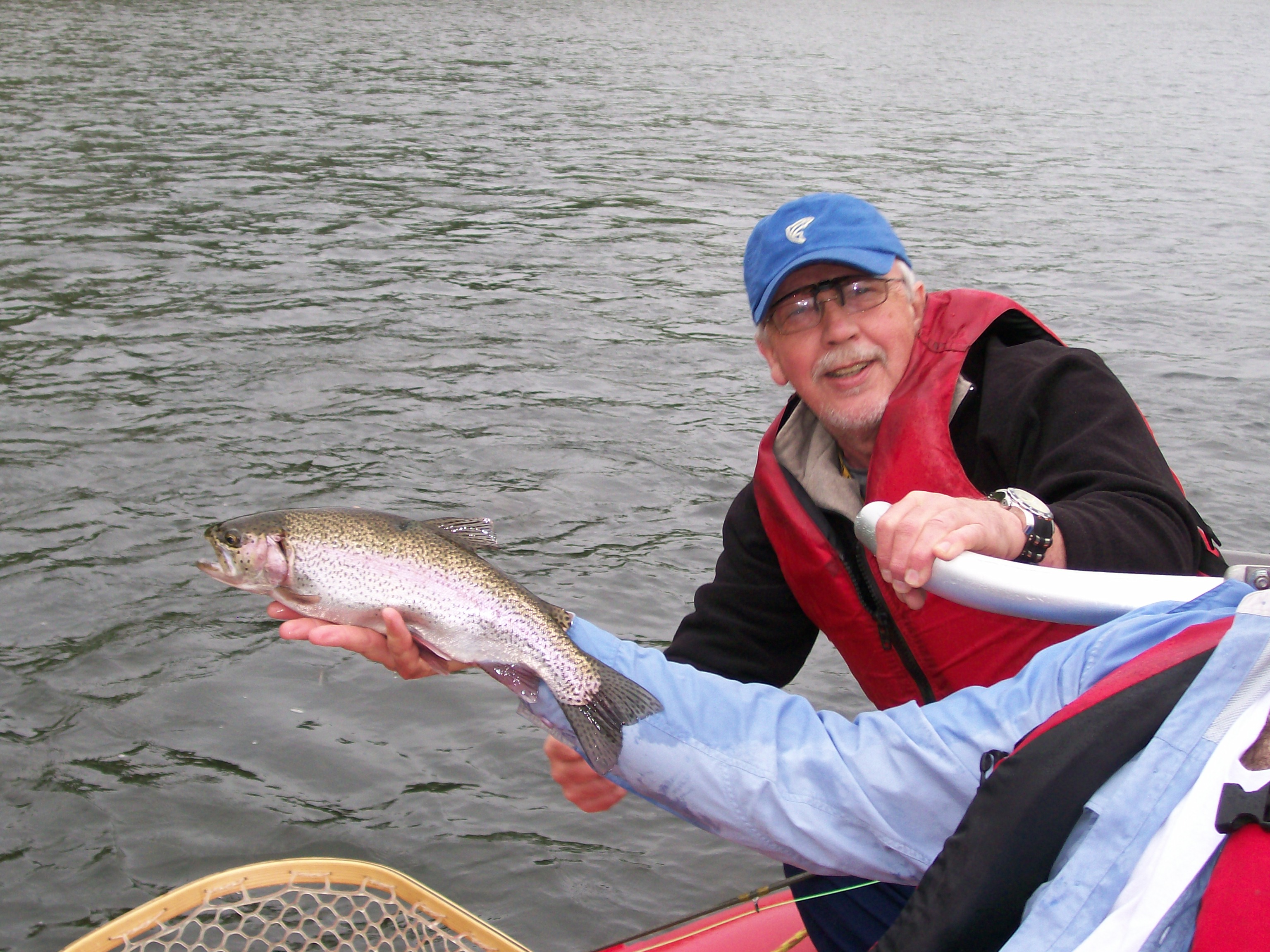 We tried throwing streamers on a swing but with the current being so strong and the anchor not holding it was hard. The guy’s nymphed majority of the float and it produced about a dozen healthy rainbows. All the rainbows were big with 2 of them being cookie cutters. Dan had the biggest which was around 18 and some change but Frank had the best hook up. Halfway through the float Frank hooks a rainbow and before I could do anything this fish jumps out of the water and right at the boat. It truly kamikaze our asses! I think it jumped 5 feet and would have gone further but it smacked the side of the boat. It made for good laughs. Dan was able to stretch his nice G-Loomis 5 wt. out and Frank was able to pop the cherry on his two new rods.