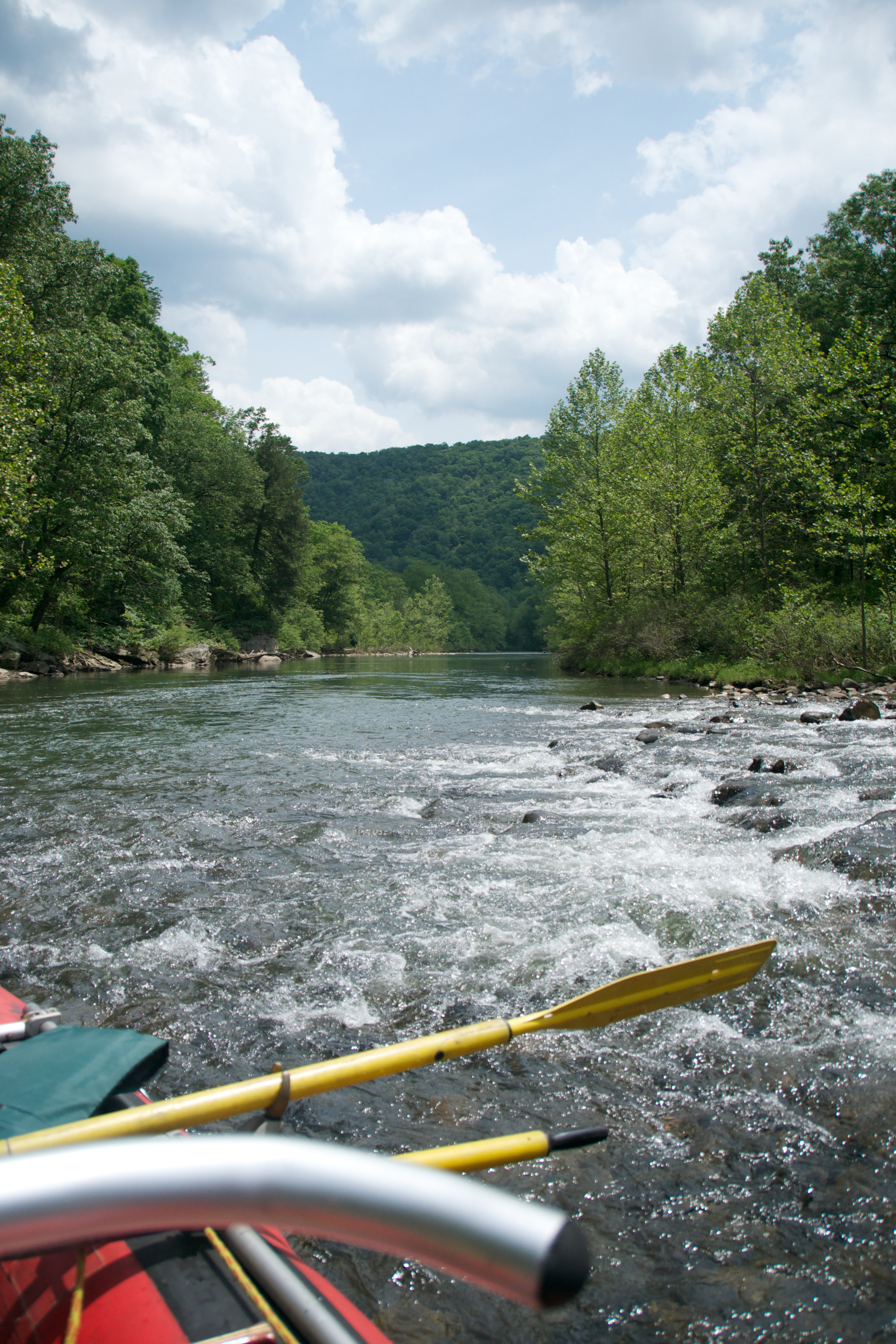 “There are certain places that friends describe that must be seen when they are near. It isn’t so much sentimental as figuring a way to one up a pal when you go to pop the question yourself. Harrison nosed the bow of Big Red into the bank at an opening of the mountain laurel. Gartley jumped out and took a line and tied off the raft to a large hemlock that lumbered over the the river bank. Harrison leads us through a maze of laurel then, suddenly, we’re in the openness of a quarter acre meadow penned in by an ever encroaching thicket. In the short years since Harrison had proposed, the laurel had nearly claimed the picnic table into its clutches.”
