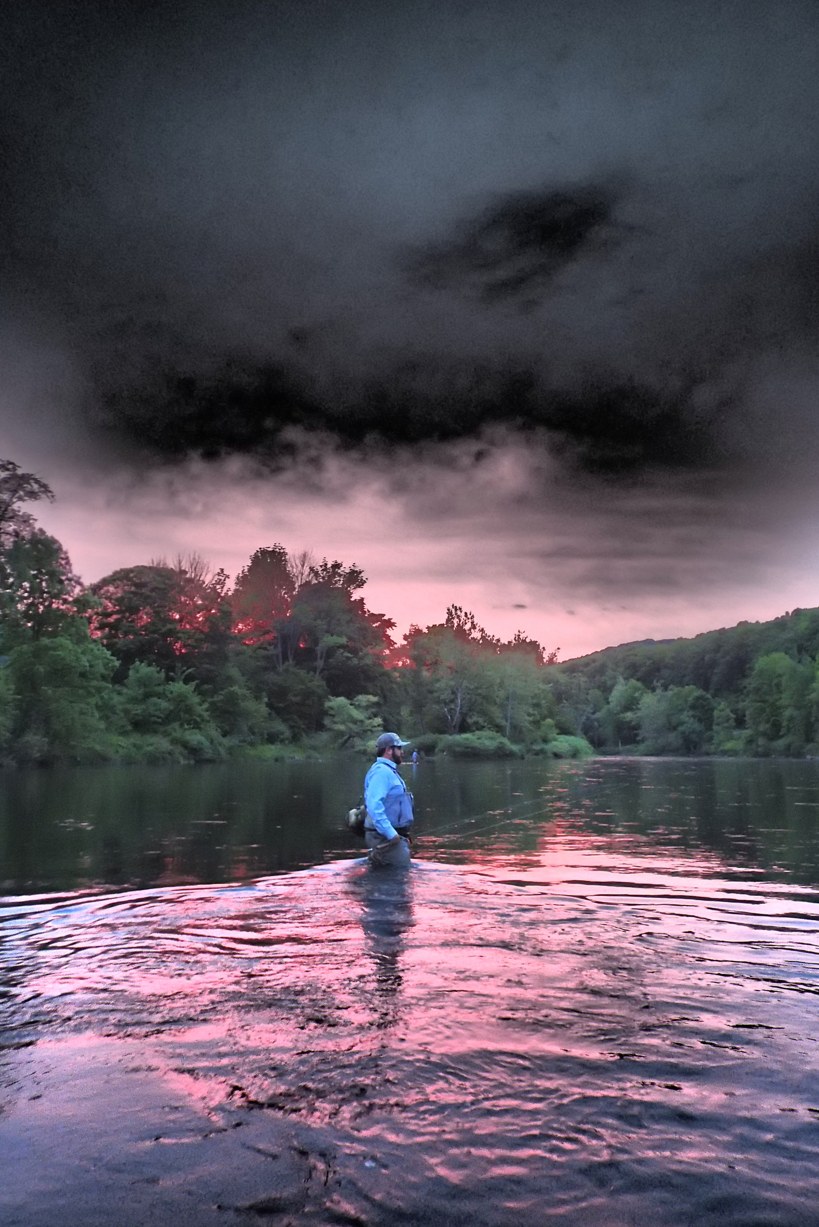 We delight in this fish’s beauty for a few minutes then let him go back into his home. The three of us fish on a few more hours. After a while we wonder back down stream to Greg’s car to head up into Deposit. This little side trip was a bust. There wasn’t enough open water for the three of us to fish comfortably without crowding each other, or the dozens of anglers on the water that evening. Sometimes you have to go back to where you began. The bridge access where we started the day was now empty and we saw several heads up on the long flat upstream. We tried our luck. Until dusk settled in too deeply, we cast to dozens of fish with dozens of different flies to no success, other than watching the sun set on one of the North East’s crown jewels of fly fishing.