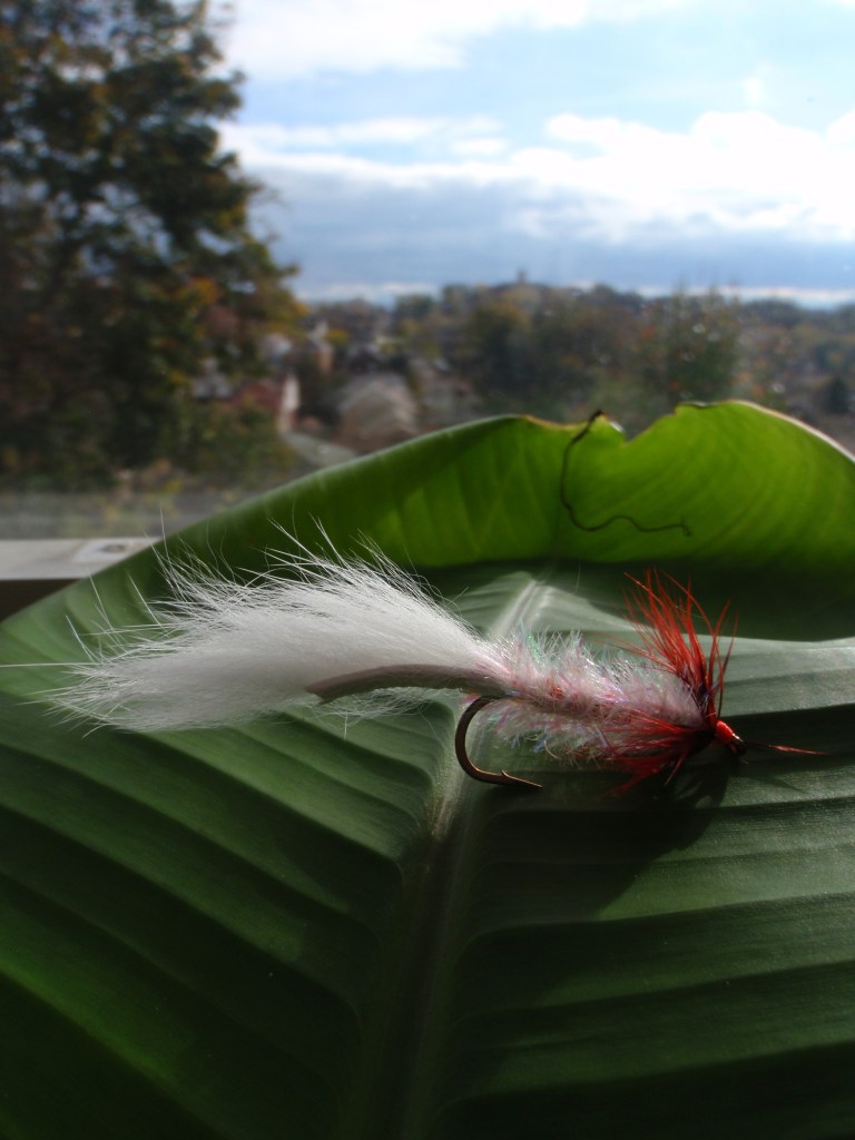 March – The year of Big Nasties!  This fly is called the circus peanut.  A great early spring pattern for big water.  It’s an articulated pattern.  The history of this fly and how it came about to be tied commercially is very interesting.